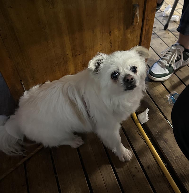 情况说明 :于2024-05-05 13:30 在石柱土家族自治县青杠村附近走丢,特征:毛发白色、叫它名字有反应,后腿抖动、走路很慢、弓背,身穿蓝色波点衣服,胆子小,未绝育,如有心人看见或捡到请联系我3000酬谢!