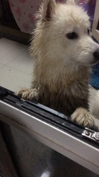 临平星桥附近走丢的萨摩耶,不知道在外面流浪多久了,狗狗很可怜希望它的主人快来认领,目的,七八个月左右的