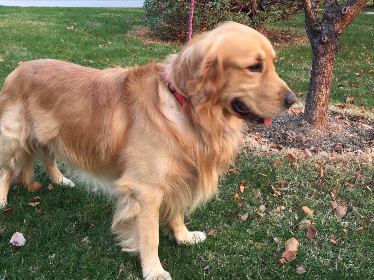 【杭州找狗】本人于2017.04.08傍晚在萧山区博奥路和萧杭路岔路口走失一只两岁金毛公狗,走失时脖子上有红黑相间的项圈。 狗狗名叫Paddy(发音:拍地),叫他会应。 希望有消息的朋友联系 电话/微信:13588281118,万分感谢!